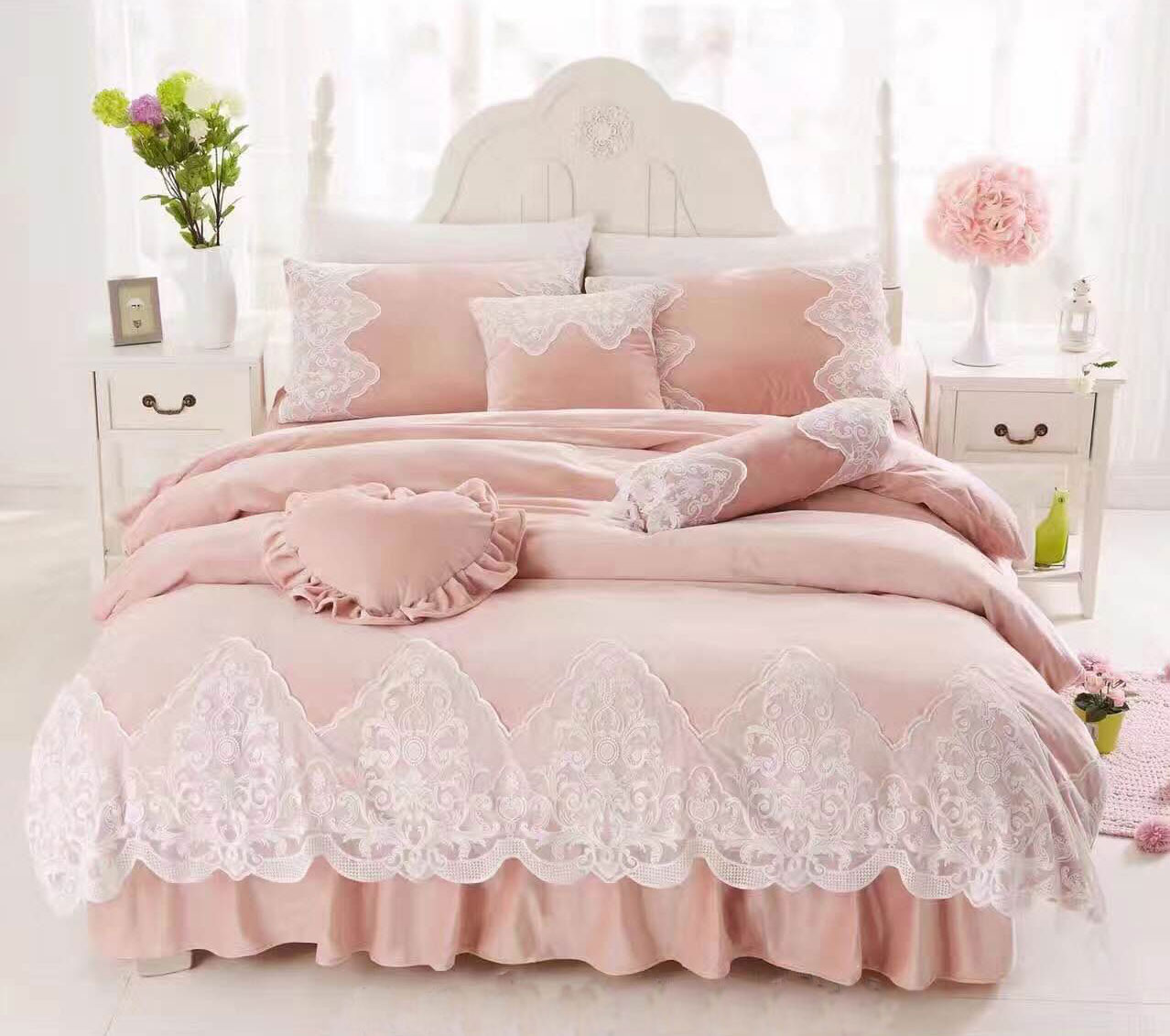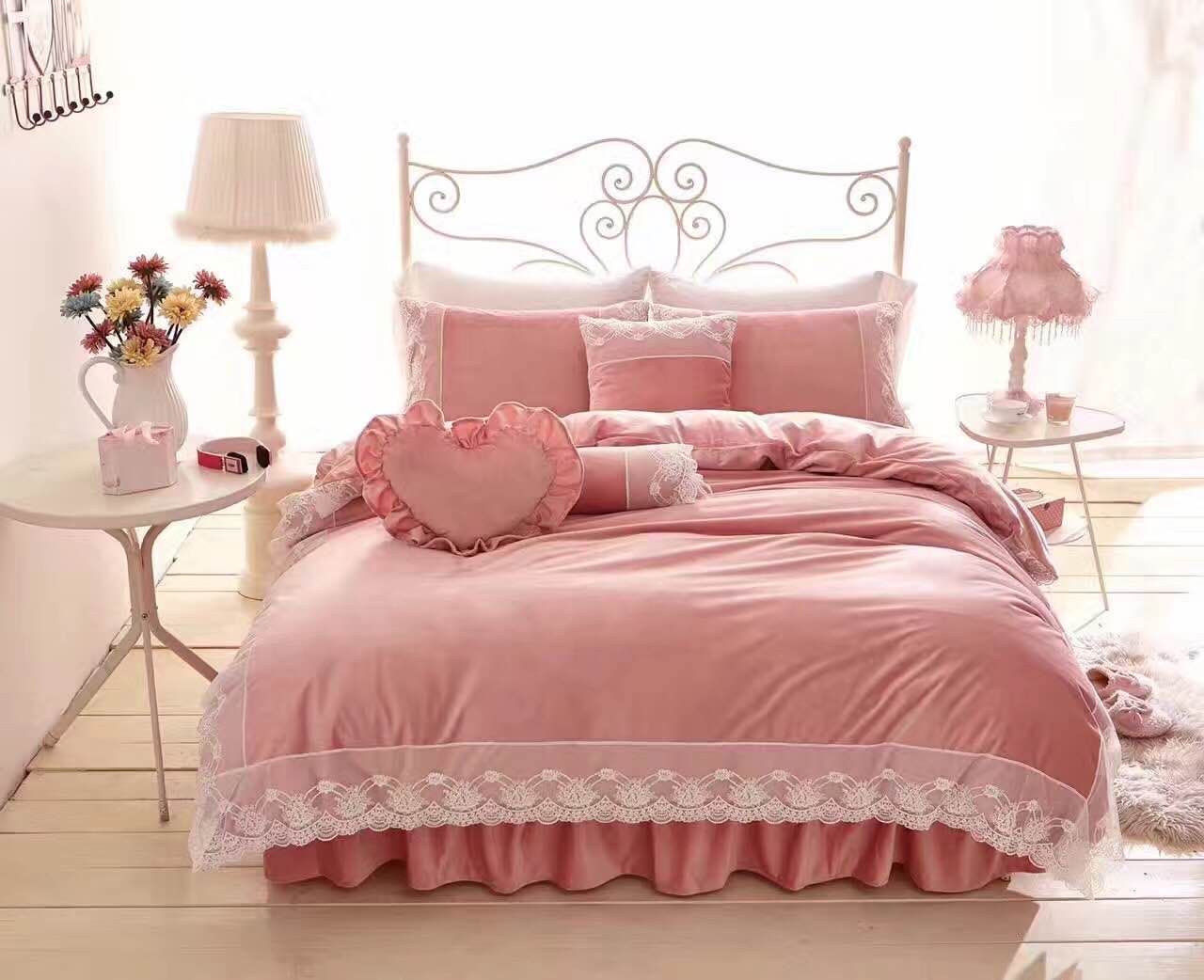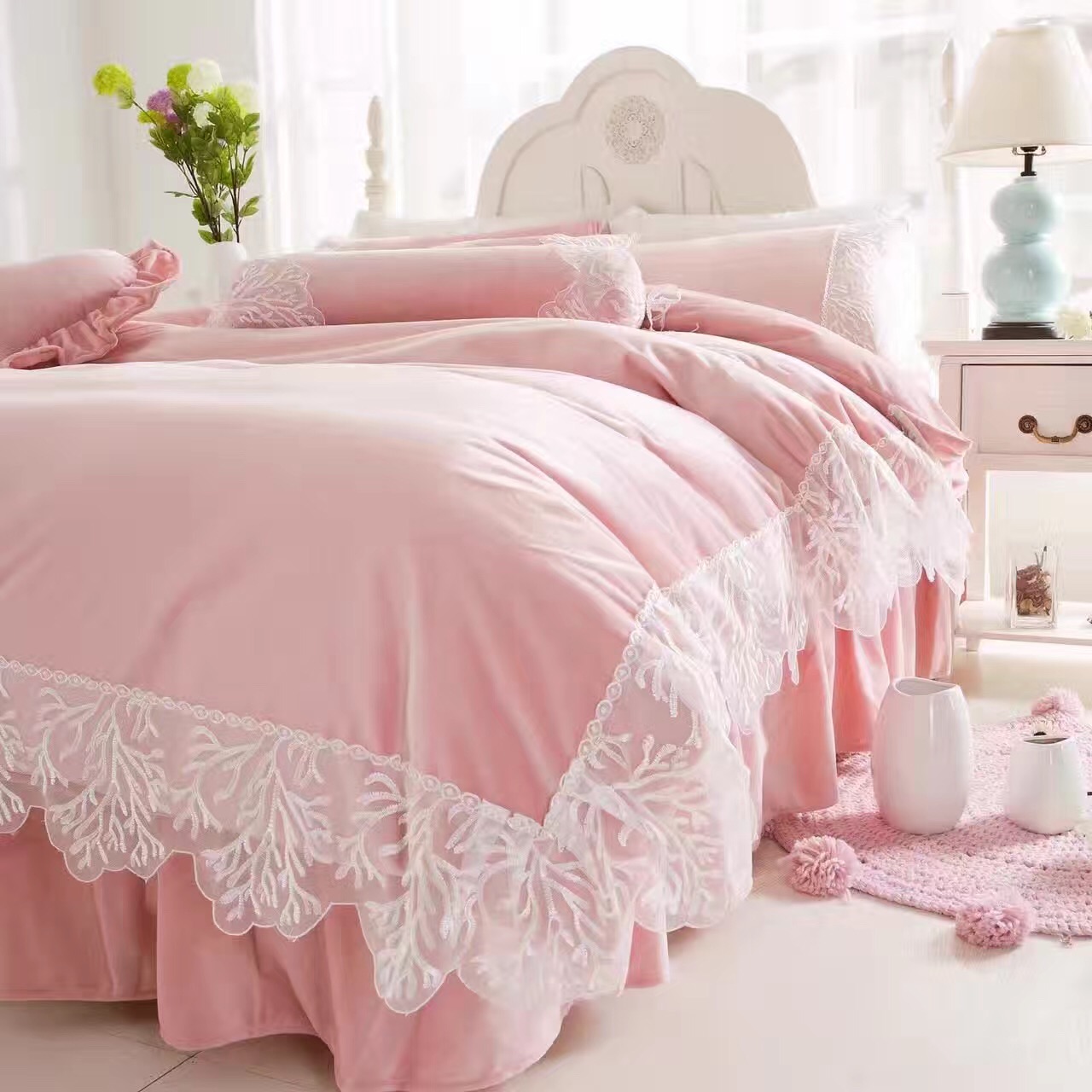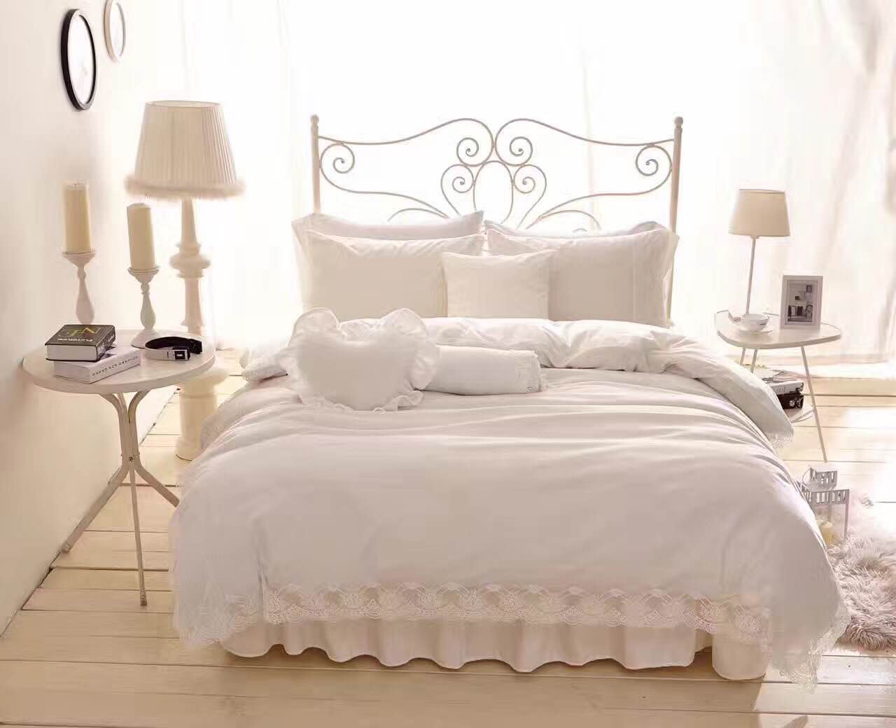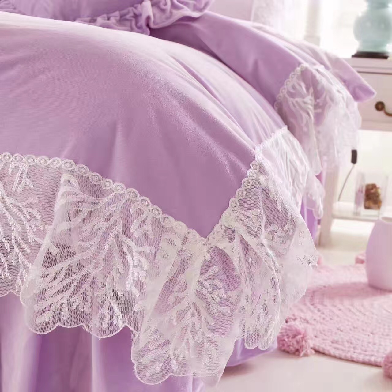 輔料:進口蕾絲 規格:1.5床 被套200*230 ,床裙150*200+45《高》,枕套48*74 ............................................. 1.8床 被套200*230,床裙180*200+45《高》,枕套48*74 ............................................. 1.8被加大 被套220*240,床裙180*200+45《高》,枕套48*74 .......................................... 2.0床 被套220*240,床裙200*220+45《高》,枕套48*74