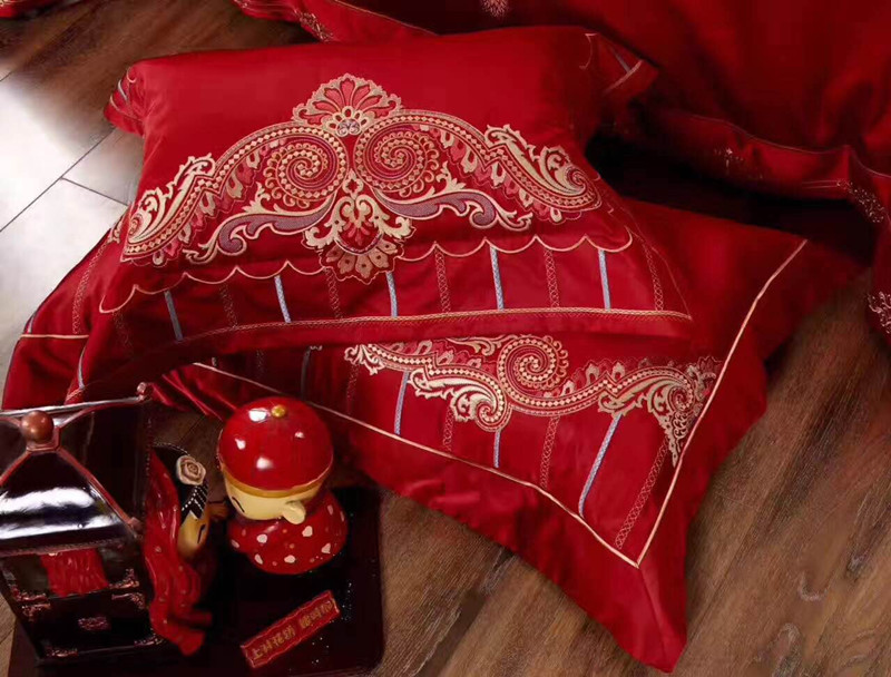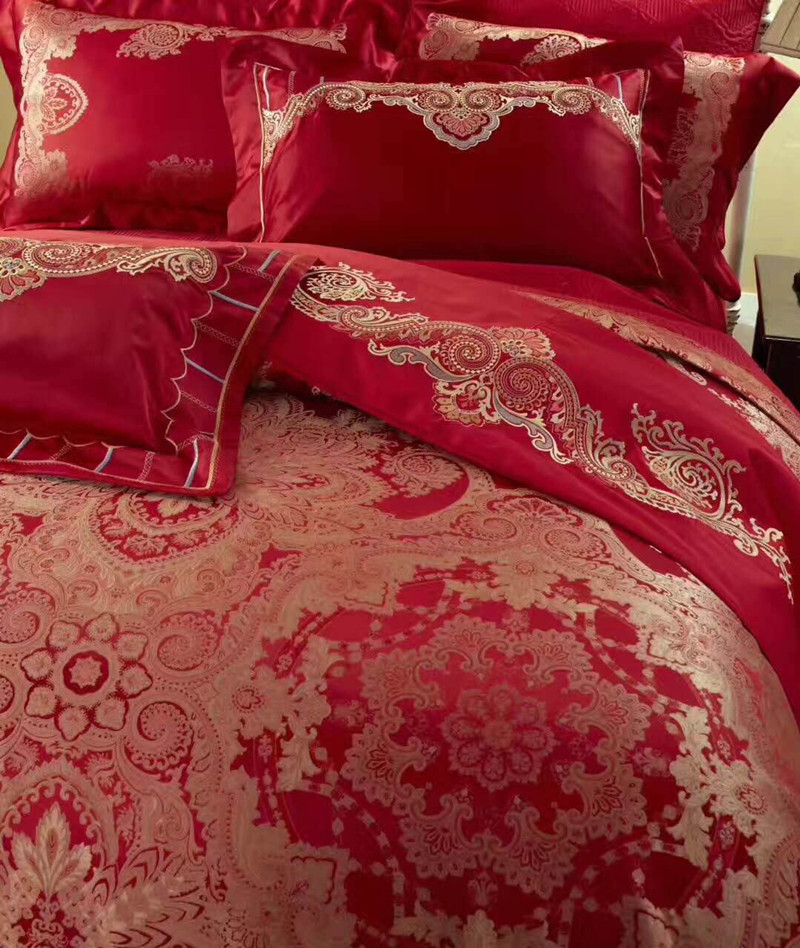 品名:天賜良緣 此款面料是織錦緞中的臻萃典范,經向緯向的色線絢麗,色彩斑斕,色澤光亮,手感和視覺的沖擊力度很大,浪漫的歐式卷草紋和唯美的佩茲利圖案搖曳生姿,美輪美奐,舞蹈出瑰麗的華爾茲!此款床品猶如重金打造的鉆石一般,高端、奢華、華麗!適合婚慶、居家、喬遷、饋贈的至高選擇!
